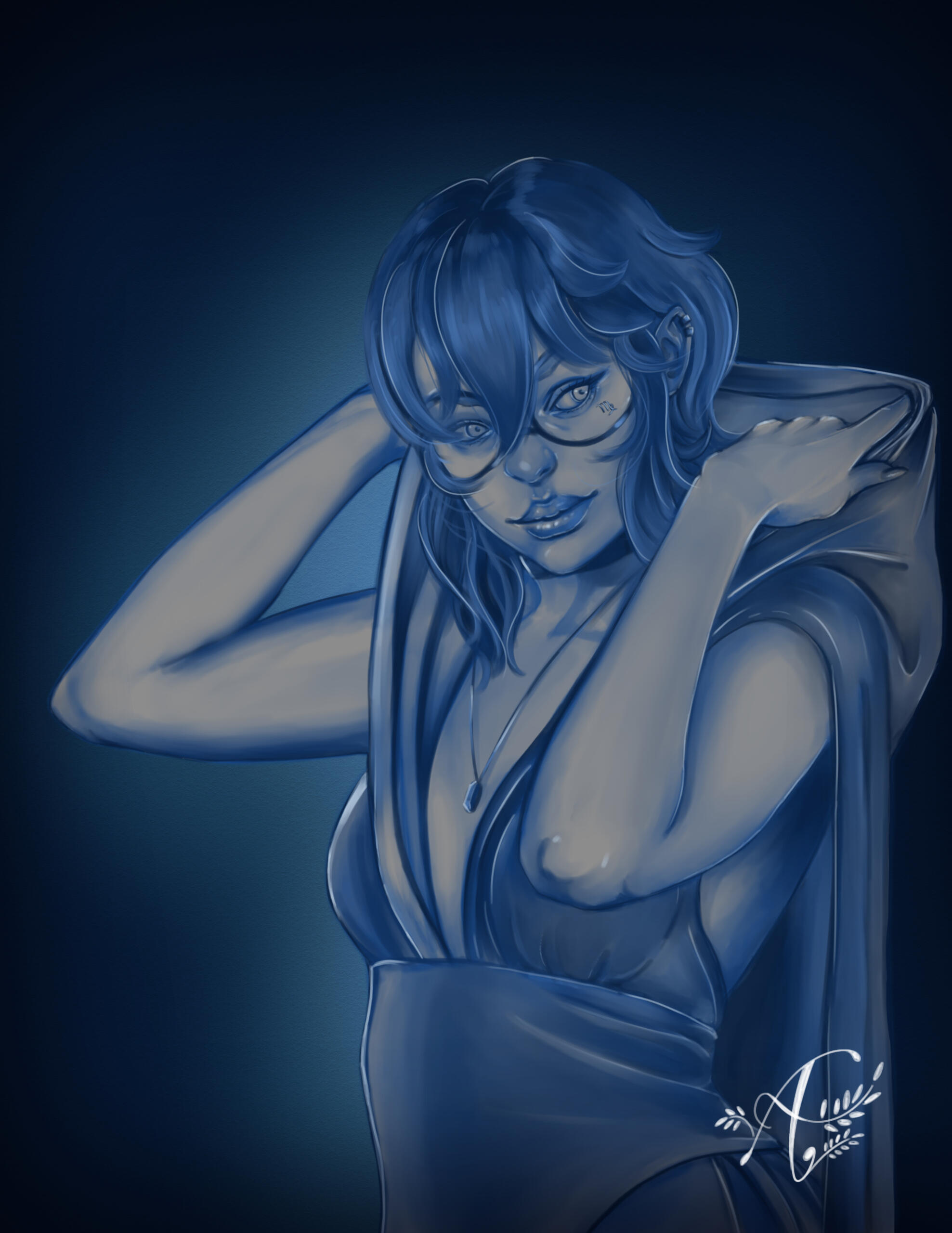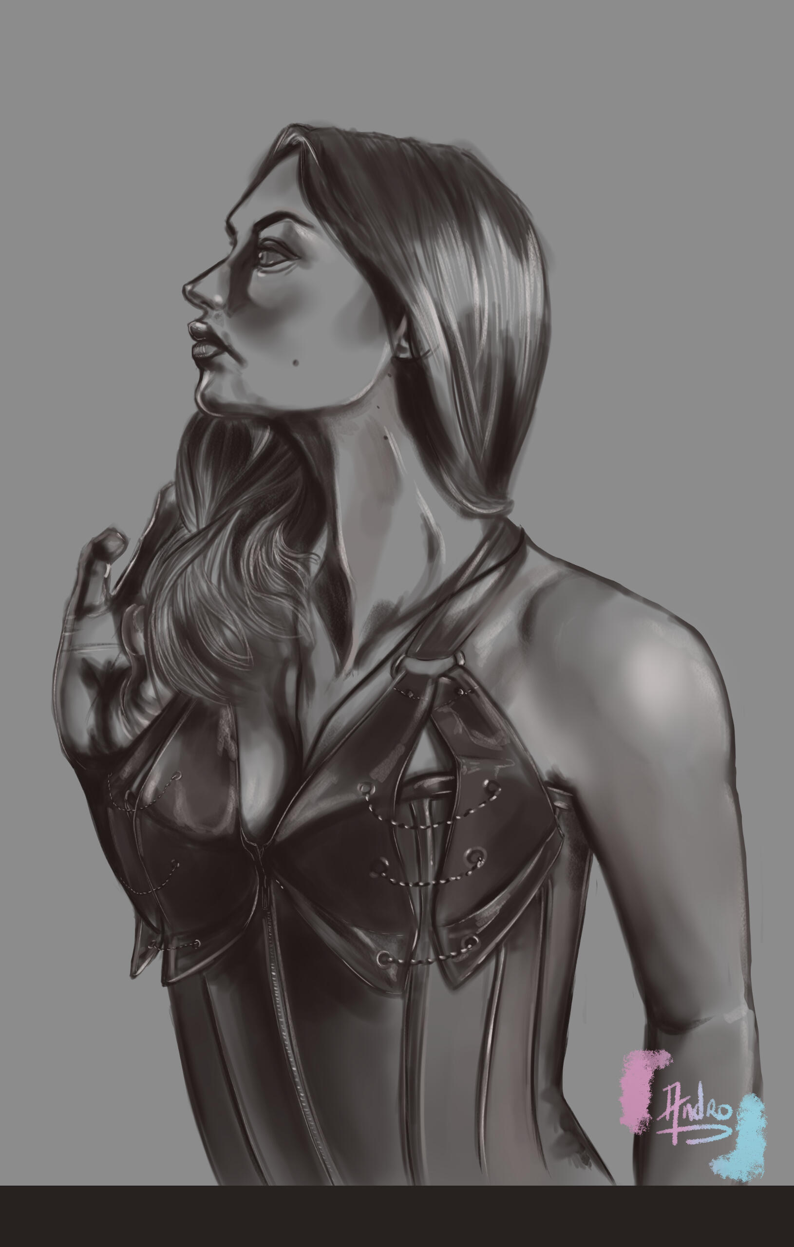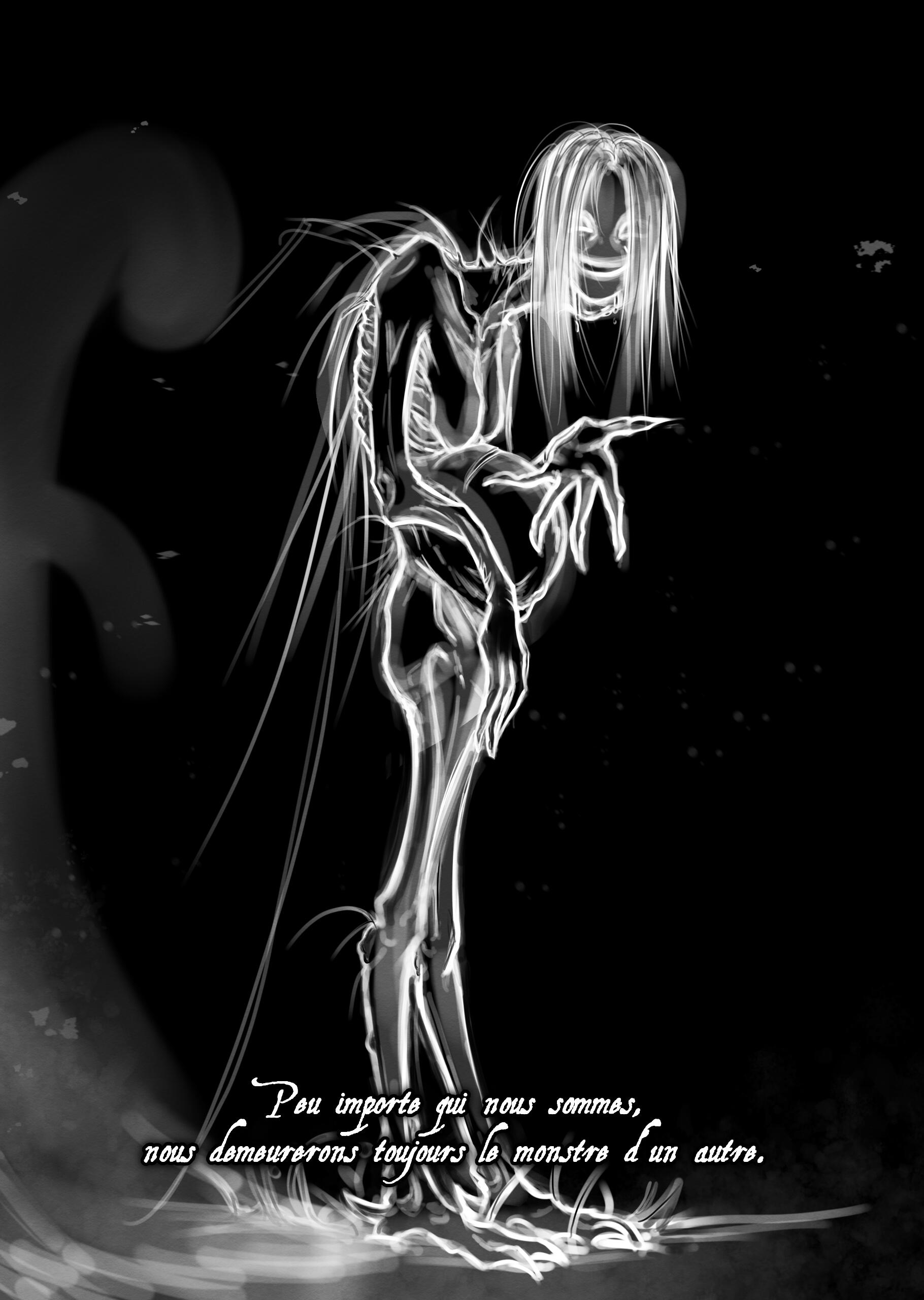 Le trait reste volontairement brouillon, mais un plus grand soin apporté à l'illustration. Pour un fullbody, je peux aller jusqu'à 12h de travail selon la complexité.