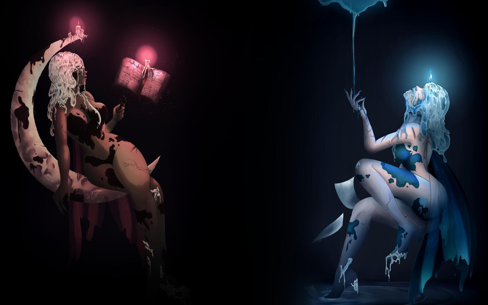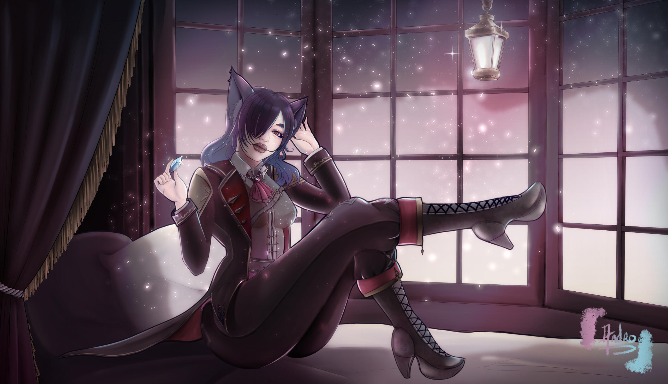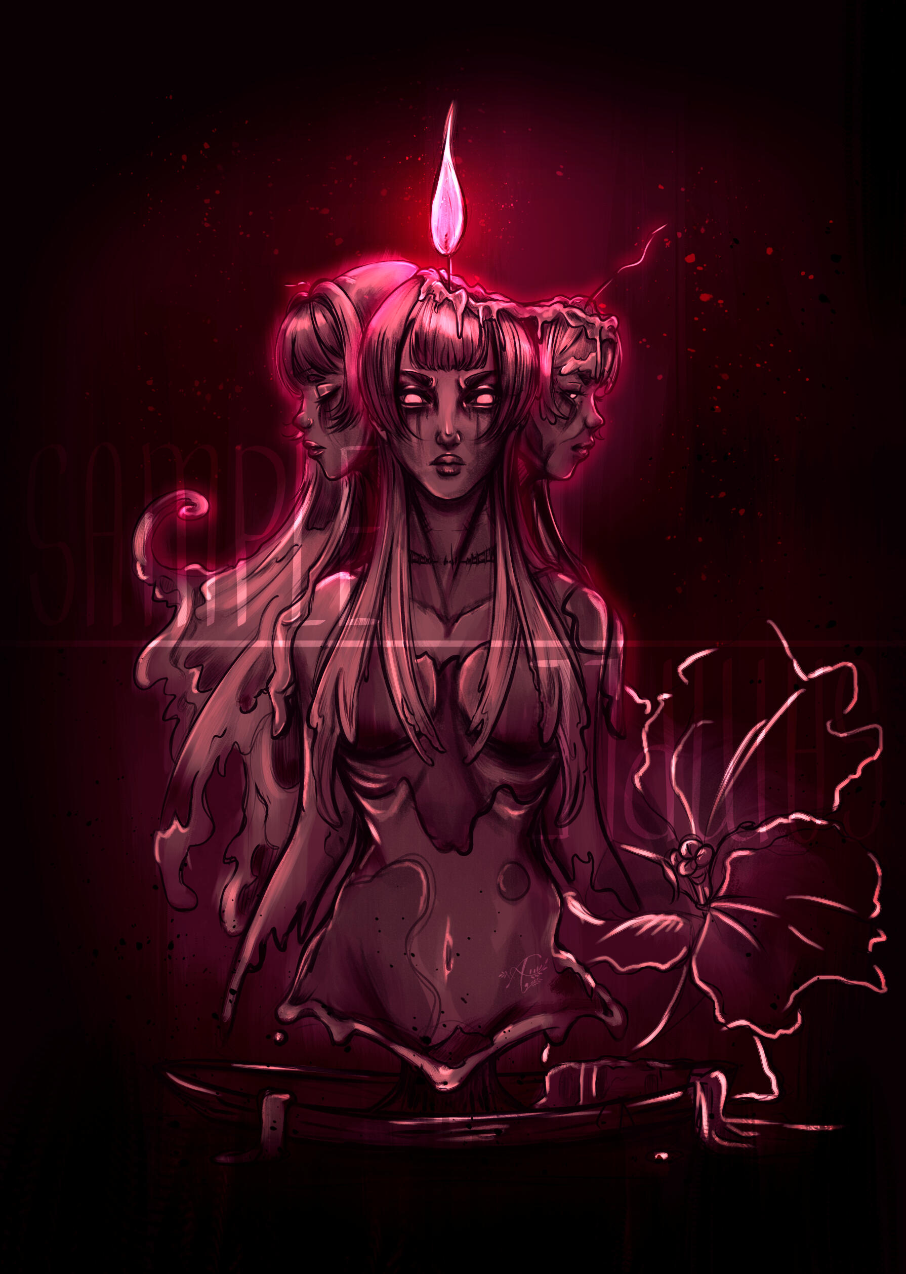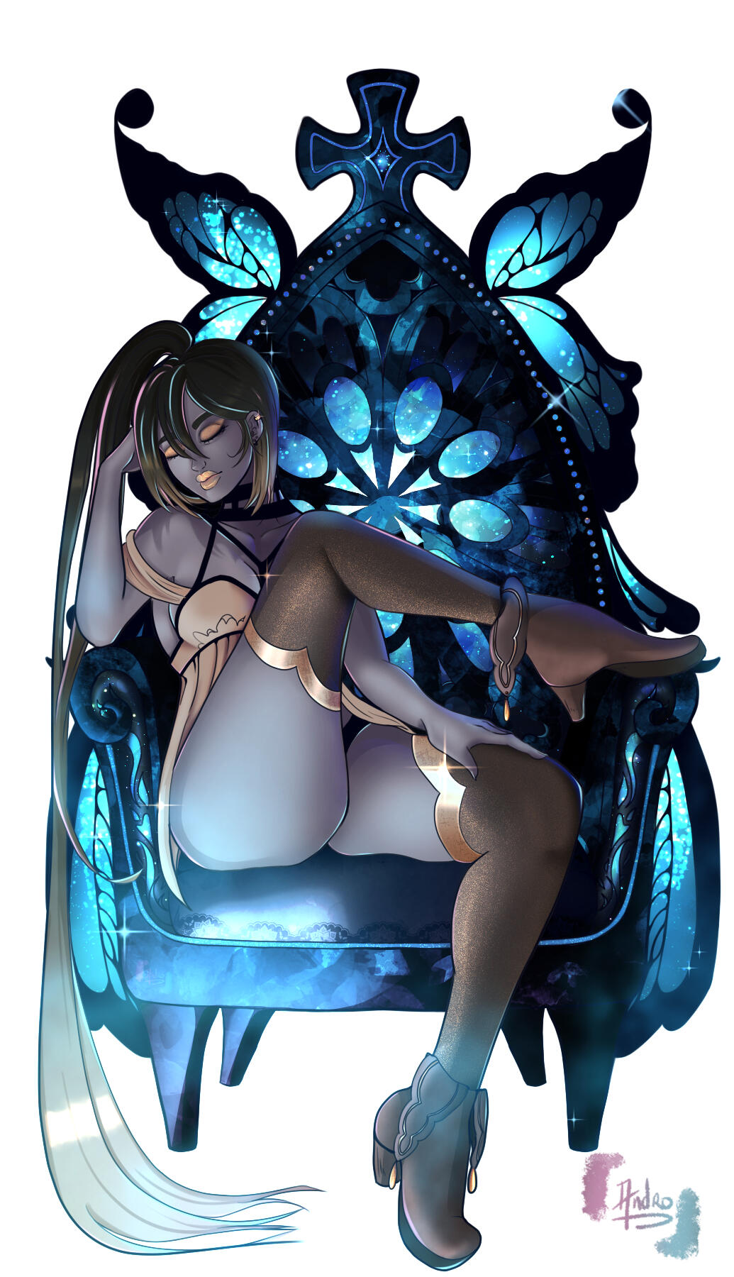 Le trait reste volontairement brouillon, mais un plus grand soin apporté à l'illustration. Pour un fullbody, je peux aller jusqu'à 12h de travail selon la complexité.